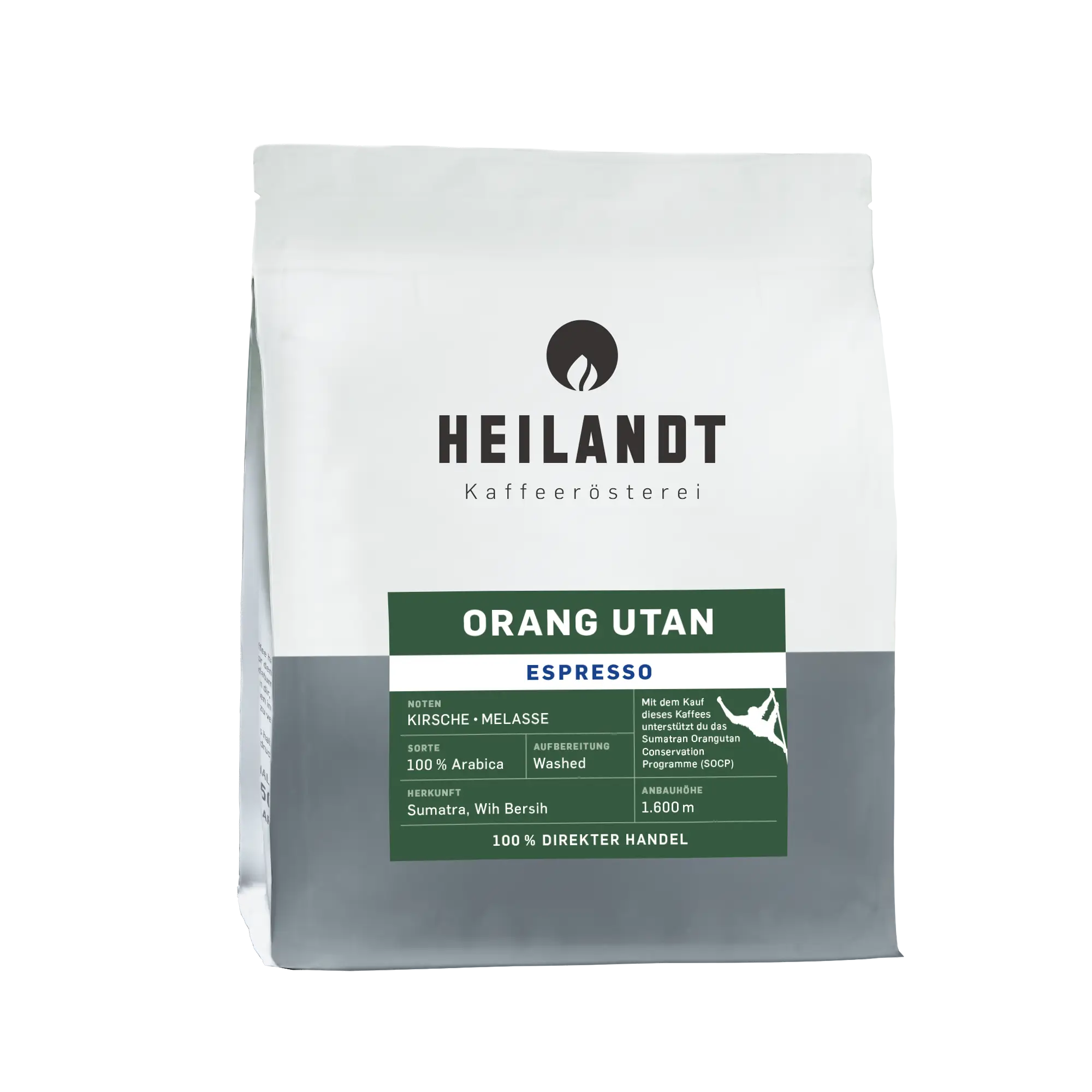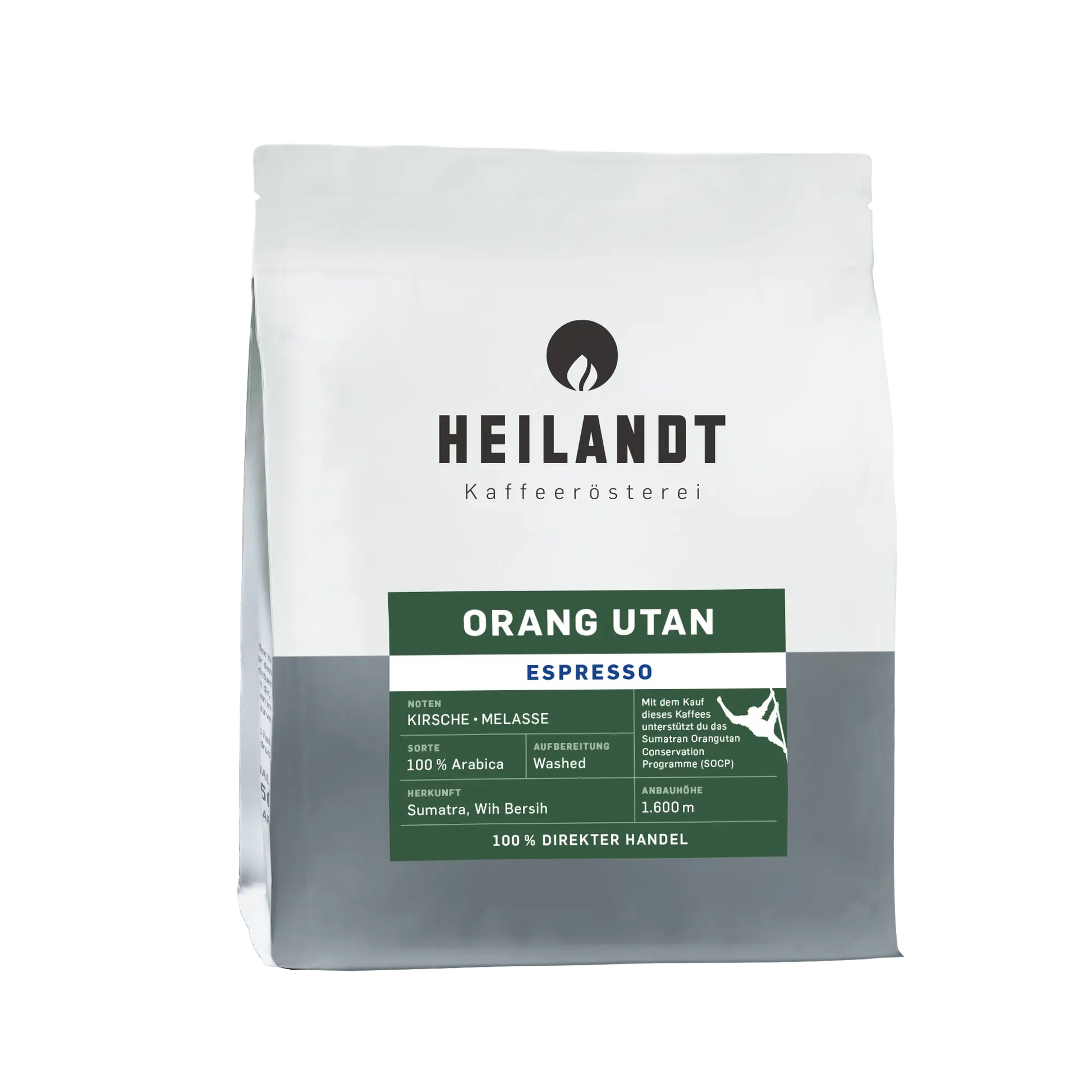 Die Bohnen für den ORANG UTAN ESPRESSO wachsen am Rande des tropischen Regenwalds auf Sumatra in Indonesien. Pro Kilogramm verkauften Rohkaffee geht insgesamt ein Euro jeweils zur Hälfte an die lokalen, ökologisch nachhaltig anbauenden Kaffeebauern in Wih Bersih auf Sumatra und an das Sumatran Orangutan Conservation Programme (SOCP).